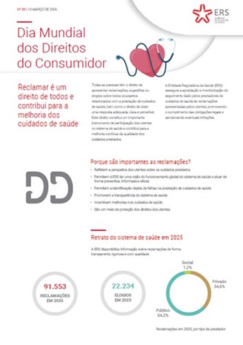 No âmbito da celebração do Dia Mundial dos Direitos do Consumidor, que se assinala a 15 de março, a Entidade Reguladora da Saúde (ERS) divulga um boletim dedicado ao direito à reclamação, destacando o papel das reclamações enquanto contributo fundamental para promover maior transparência e qualidade no sistema de saúde.