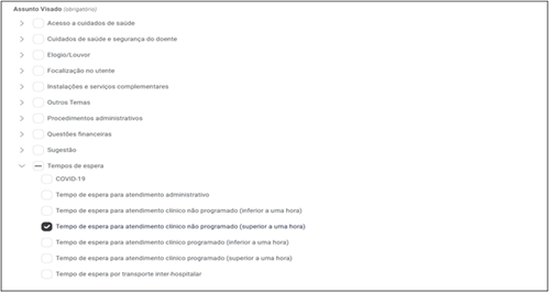 É expressamente referido nas alíneas g) e h) do n.º 3 do artigo 9.º do Regulamento ERS n.º 65/2015, de 11 de fevereiro, que “[n]a inserção da reclamação, a entidade responsável pelo estabelecimento prestador de cuidados de saúde deve ainda proceder ao preenchimento do formulário disponibilizado, designadamente [da] Tipologia da reclamação (Reclamação, Sugestão ou Elogio) [e do] Assunto da reclamação”.