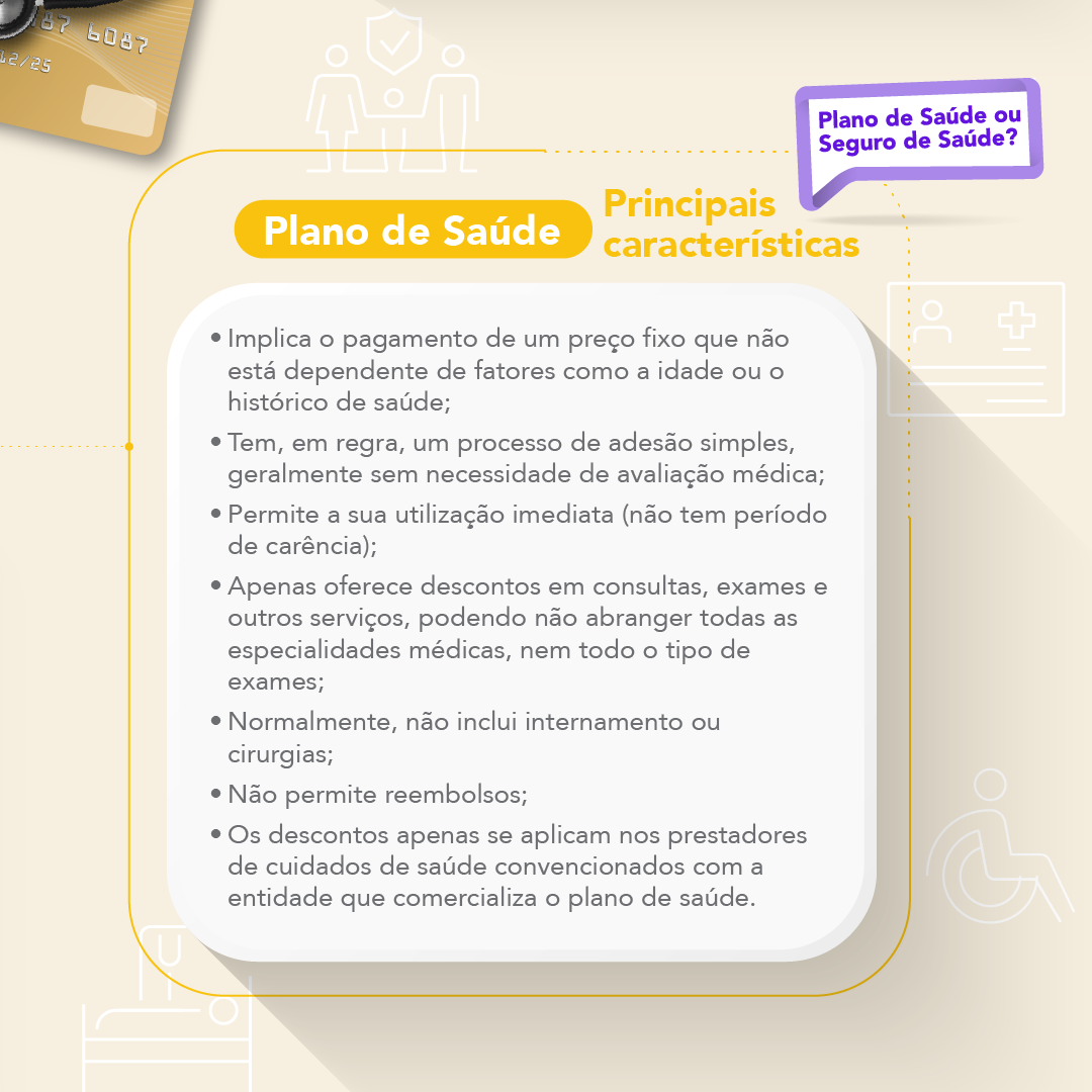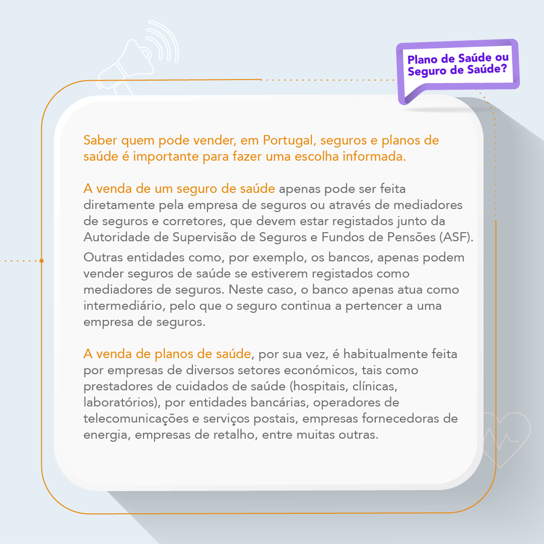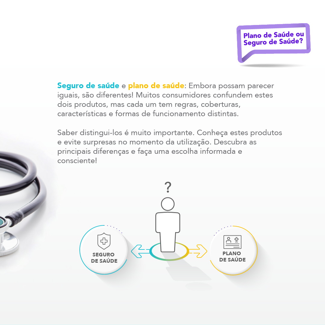 Para o ajudar nessa escolha, a Direção-Geral do Consumidor (DGC), a Entidade Reguladora da Saúde (ERS) e a Autoridade de Supervisão de Seguros e Fundos de Pensões (ASF) lançaram a campanha : « Plano de Saúde ou Seguro de Saúde? Conheça as diferenças e escolha sem dúvidas!».