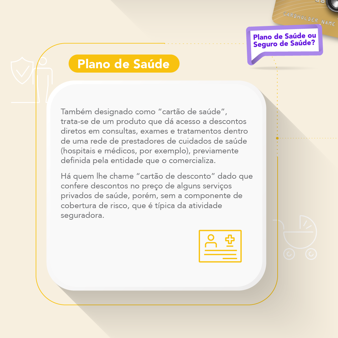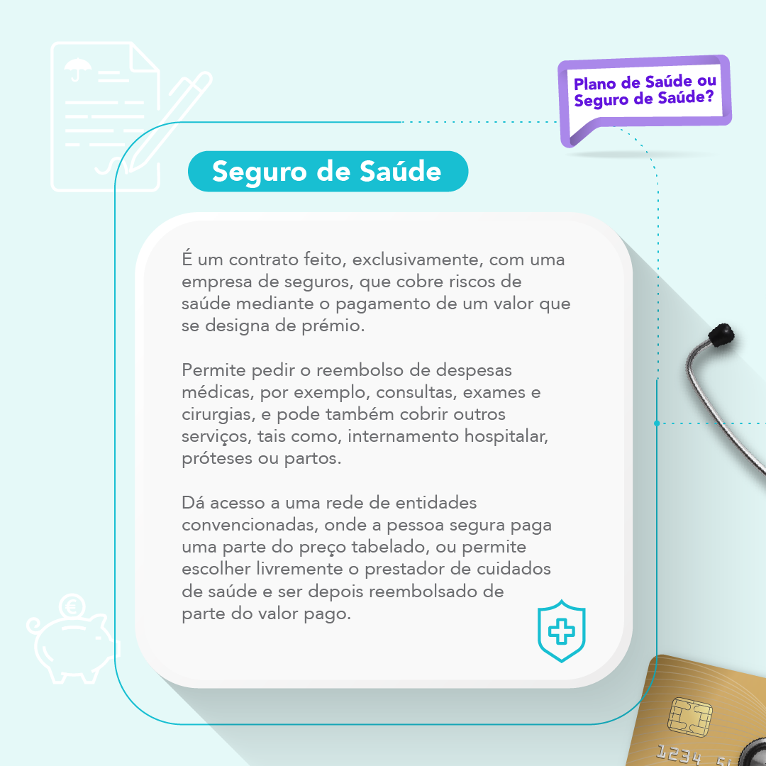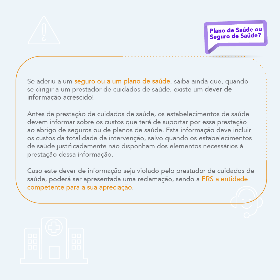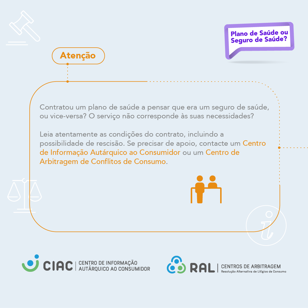 Para o ajudar nessa escolha, a Direção-Geral do Consumidor (DGC), a Entidade Reguladora da Saúde (ERS) e a Autoridade de Supervisão de Seguros e Fundos de Pensões (ASF) lançaram a campanha : « Plano de Saúde ou Seguro de Saúde? Conheça as diferenças e escolha sem dúvidas!».