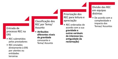- A utilização de uma funcionalidade de classificação de processos REC por temas e assuntos, para definir prioridades na apreciação, de forma a que aqueles com maior potencial de gravidade sejam analisados mais rapidamente.